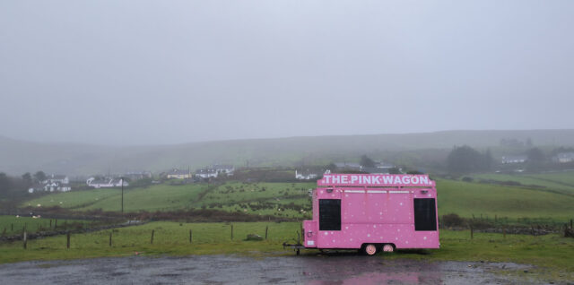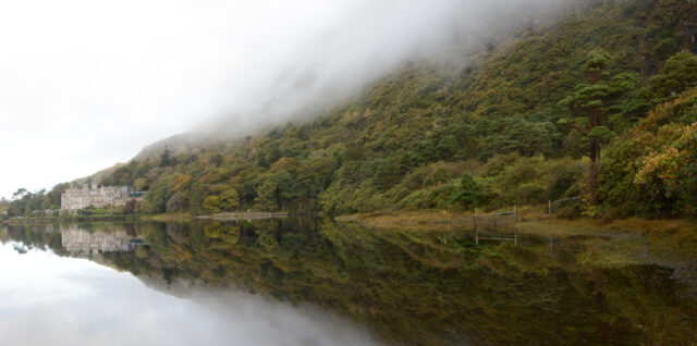 Heute wollen wir mal nicht übers Wetter schwadronieren! Leider geht das nicht. Die Nacht über hat es geregnet und auch heute morgen treibt der Wind jegliches Wasser, von oben, von Unten oder auch von der Seite, durch die Luft. Laut Vorhersage soll es nur zwischen 10 und 12 nicht regnen. Also versuchen wir um 10 unser Glück. In Letterfrack, in dem kleinen Café, besorgen wir uns für heute Nachmittag 2 kleine Stückchen Kuchen und im Supermarkt noch Brot. Kurz vor Kylemore Abbey ,steht mitten auf der Strasse ein Schild: Deviation – Road flooded. Oha. Das hatten wir auch noch nicht. Wir werden über Deviation weiterlesen