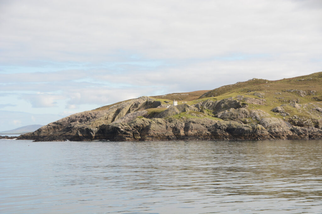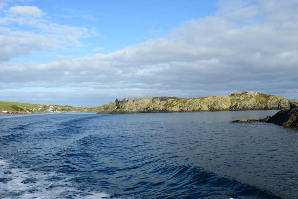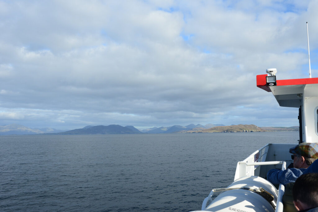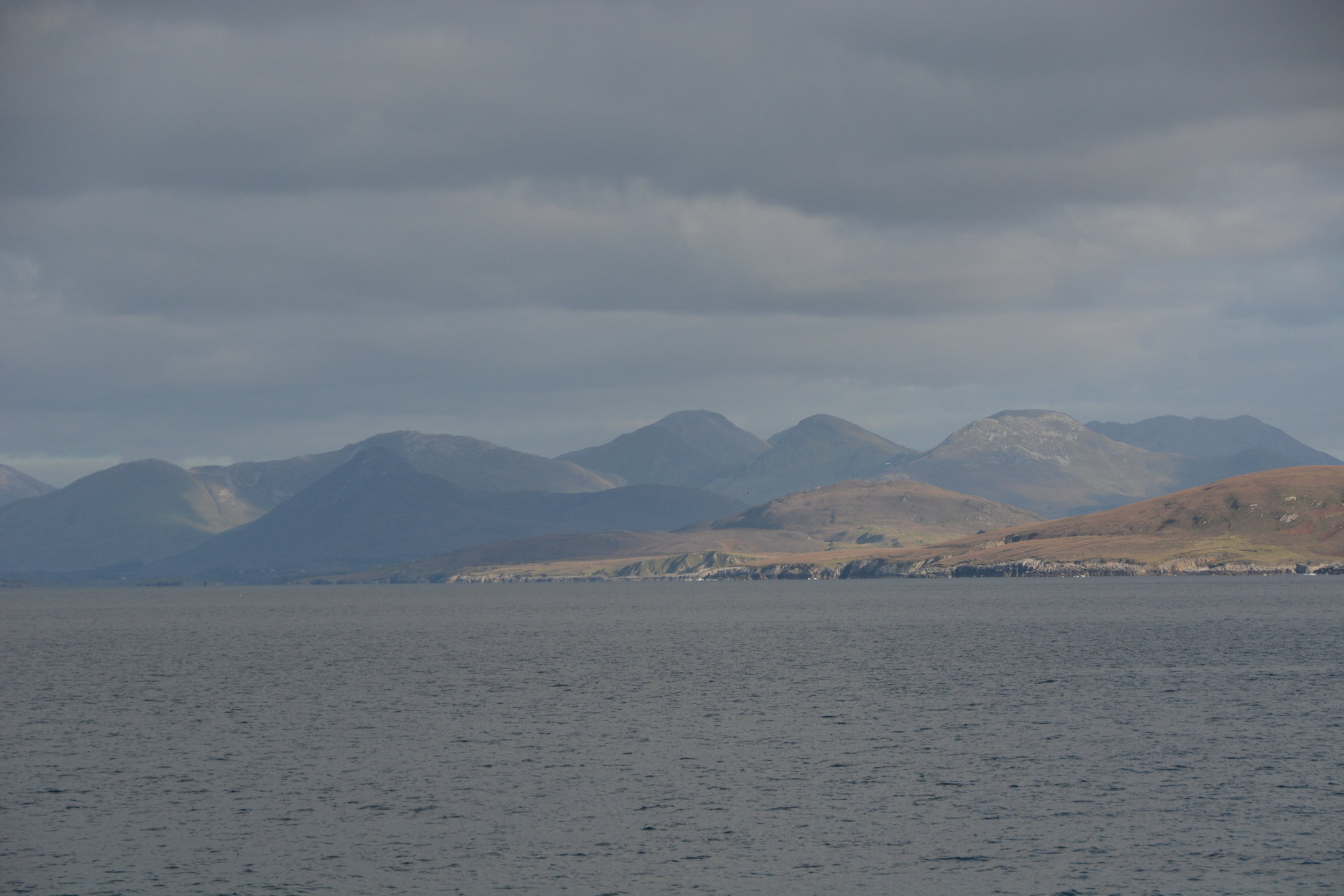 Die Überfahrt nach Inishbofin mit der Fähre dauert 35 Minuten und ist bei glattgebügeltem Meer ein Traum. Hinter uns sehen wir die Twelve Bens und Maumturk Mountains.