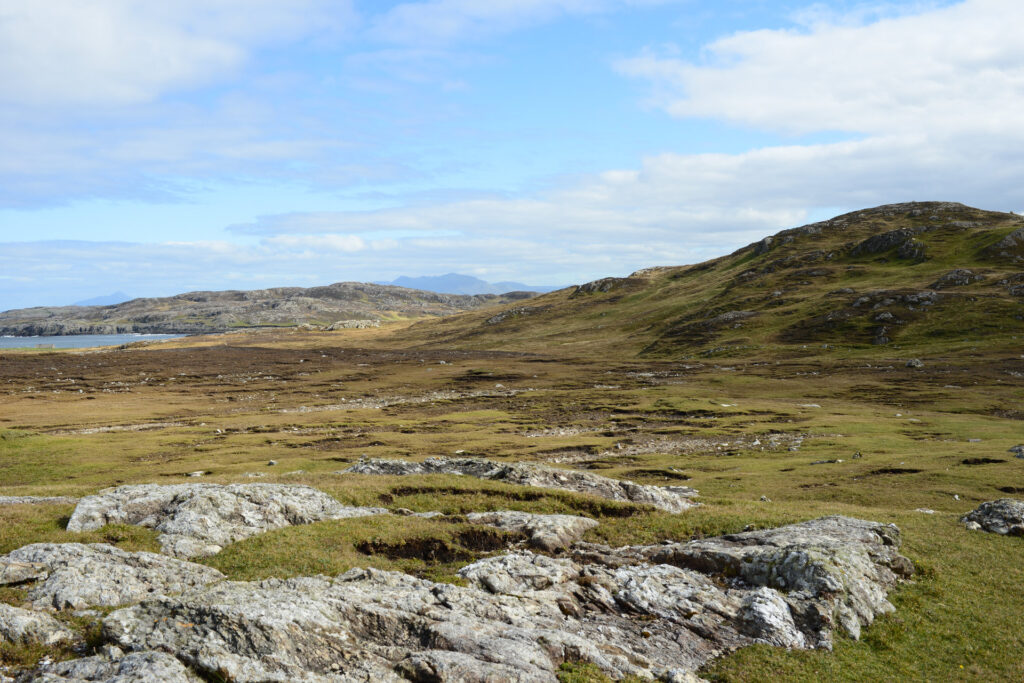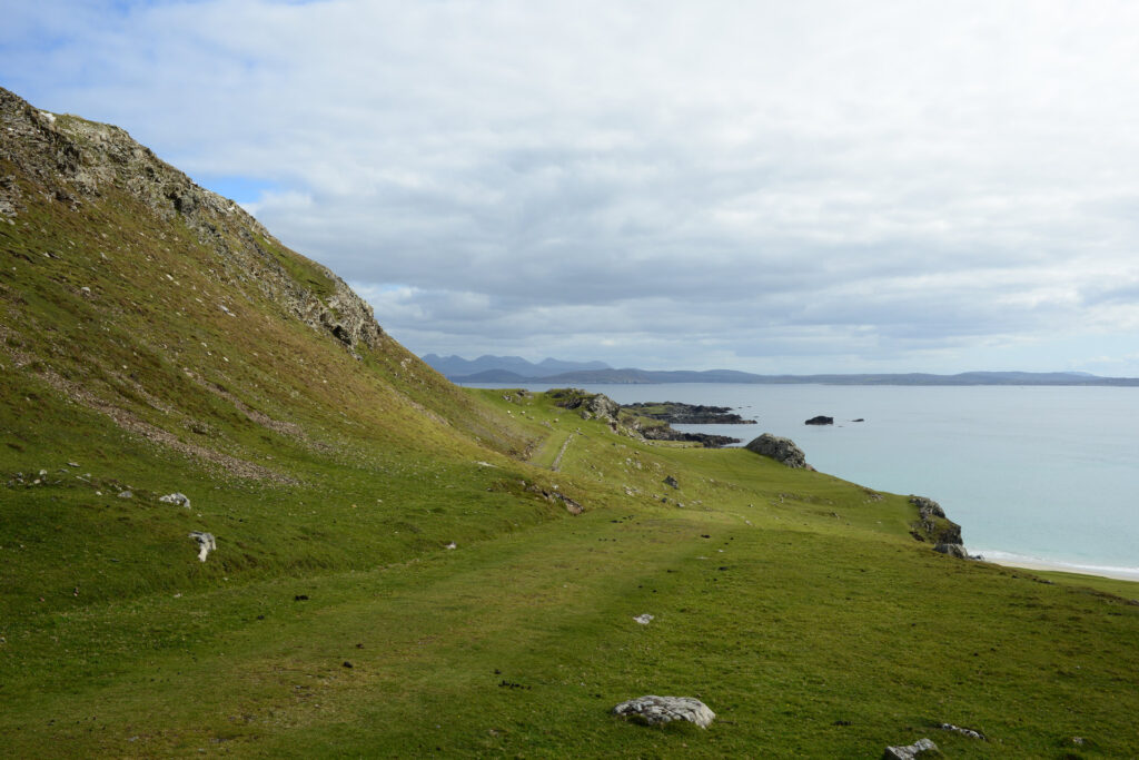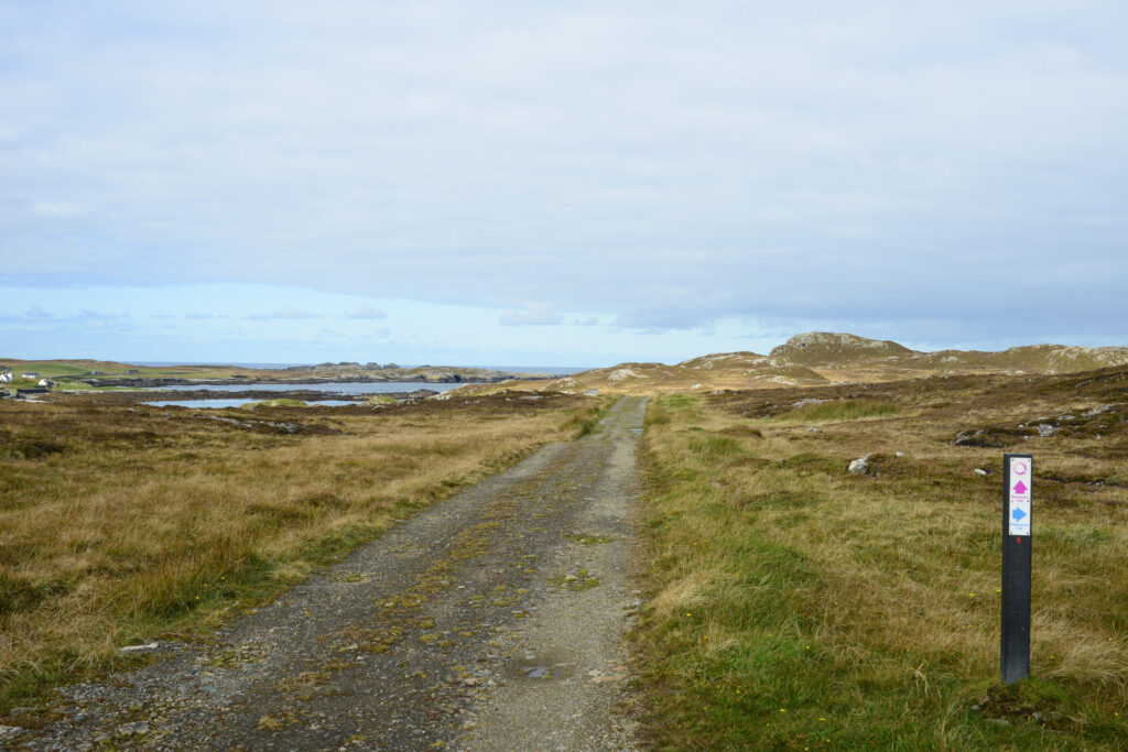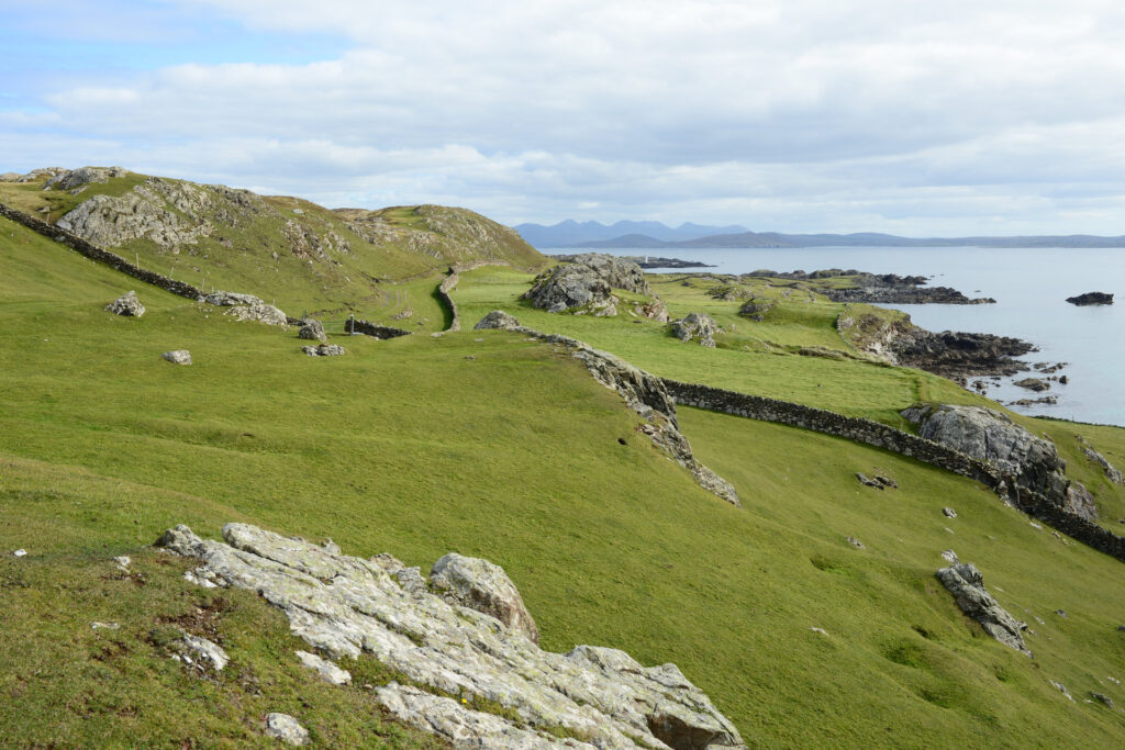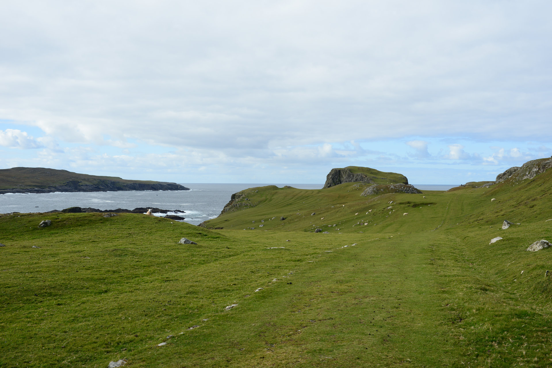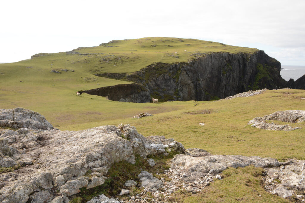 Auf der Insel angekommen laufen wir direkt den Westquarter Loop los. Zunächst durch das „Dorf“ ein Stück den Hang hinauf (wir wundern uns wie viele Autos es hier auf der kleinen Insel gibt) und dann durch eine Stein-/Wüsten-/Küsten-/Wiesenlandschaft wie sie schöner nicht sein könnte. Das ganze ohne Wind, relativ warm und immer wieder Sonne. Die Schule (die gibt es hier tatsächlich!), an der wir vorbeilaufen, und damit die ganze Insel, hat 1982 zum ersten mal elektrisches Licht bekommen! Wegen der vielen Fotos brauchen wir für die 8km auch fast 3 Stunden.