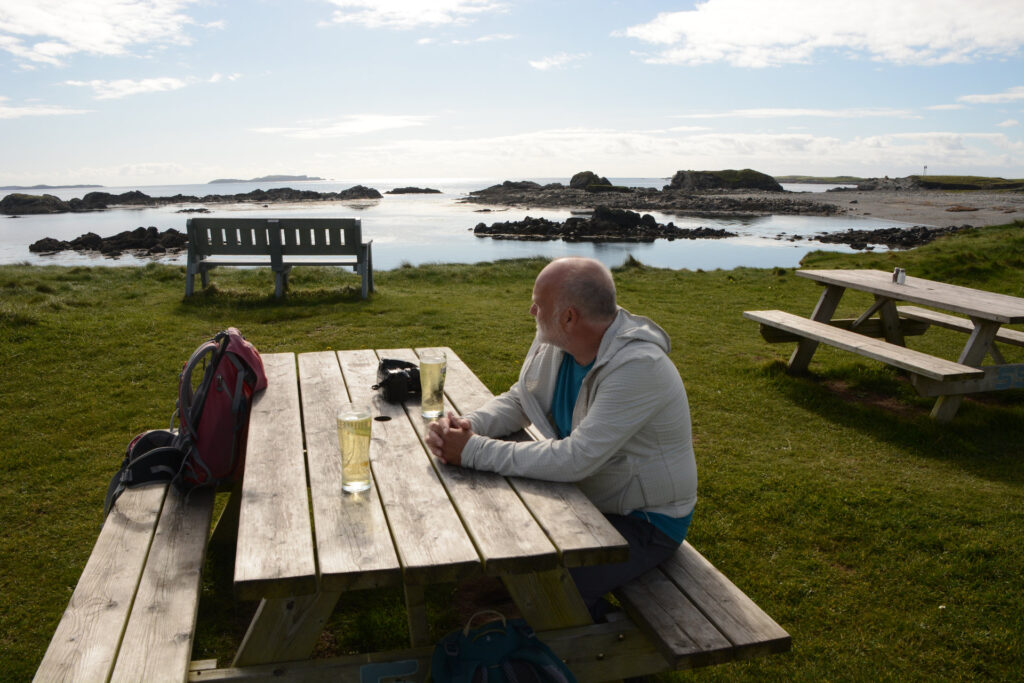 Wieder an Land kaufen wir uns zwei Büchsen Guinness und Chips für zuhause. Im Wintergarten ist ordentlich eingeheizt.
