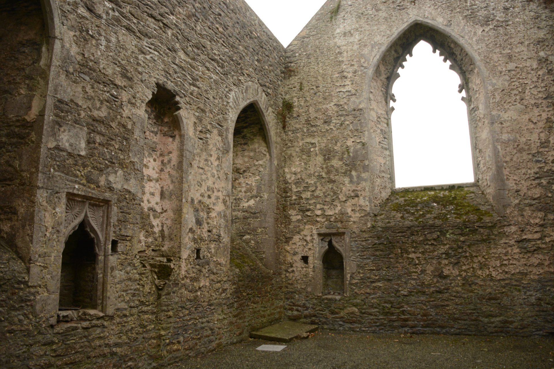 Zuerst geht es die N62 bis nach Roscrea gen Südosten. Dann am südlichen Rand der Slieve Bloom Mountains entlang jeweils über kleine Nebenstrassen. Durch Zufall sehen wir ein Schild zu einer alten Abbey in Aghaboe. Diesen Abstecher gönnen wir uns natürlich auch. Leider fängt es an zu nieseln. Laut Wettervorhersage soll es heute keinen Tropfen geben. Keine Ahnung wie die Iren Regen definieren.