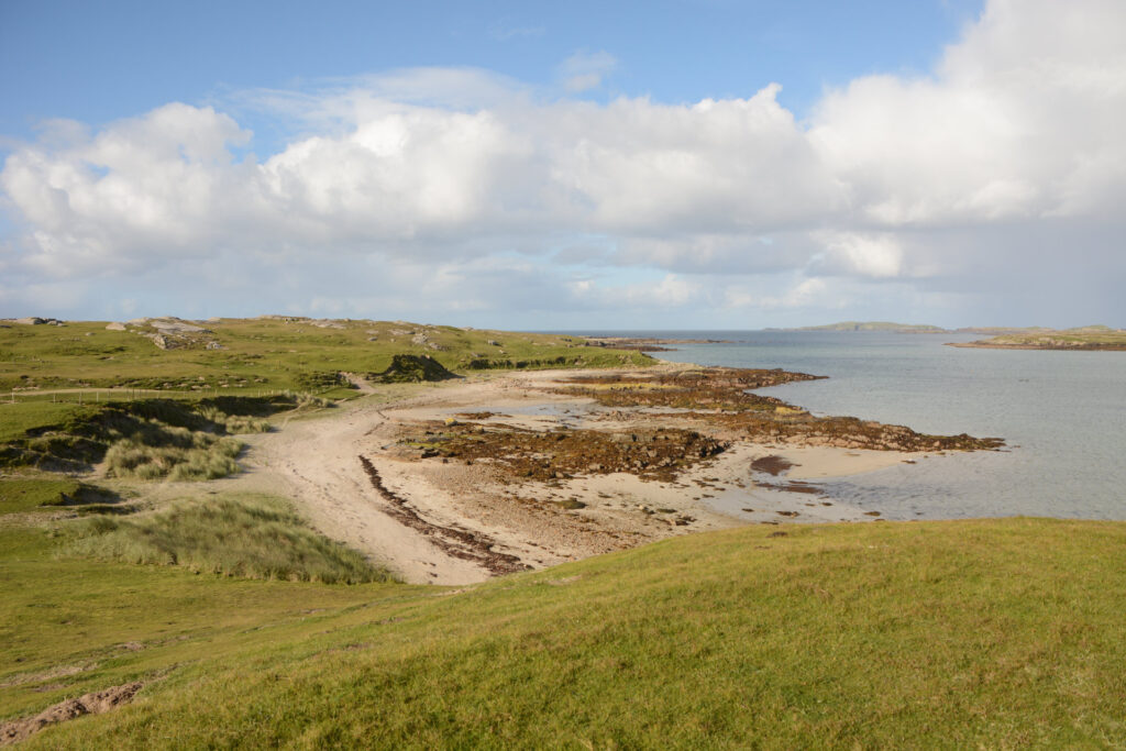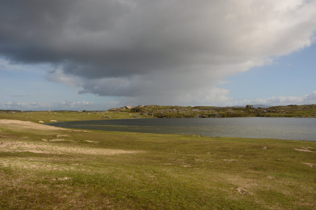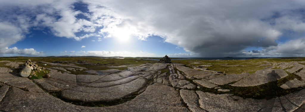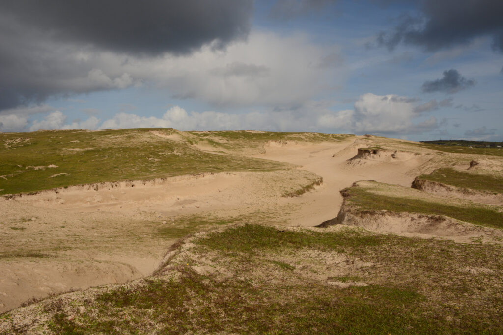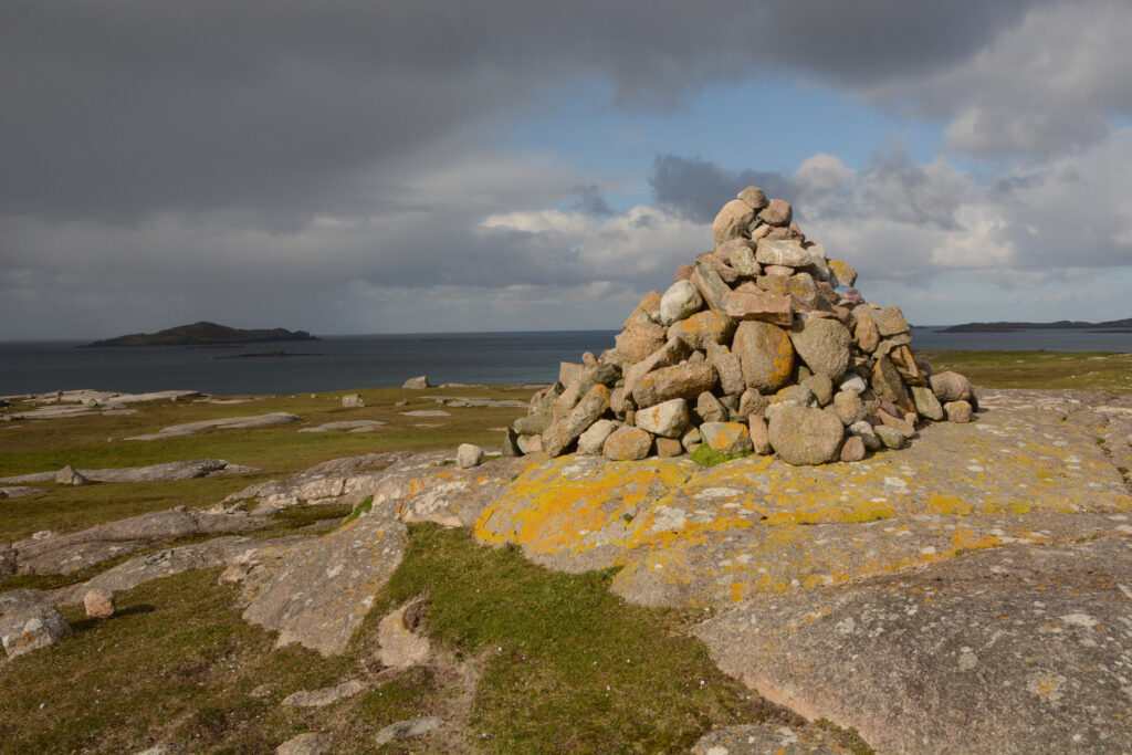 Wir haben eine grandiose Weitsicht, sehen mehrere Regenbögen in der Ferne, es gibt tolle Felsformationen, weite Wiesen, den Blick auf die Berge auf dem Festland, den Inlandsee und auf die Sanddüne. Einfach nur schön!