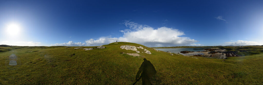 Nachdem wir auf das Inselinnere abgezweigt sind laufen wir dort einen größeren Bogen und dann wieder den gleichen Weg am Meer zurück. Thomas hat heute das Stativ mit Nodalpunktadapter dabei um perfekte Panoramen machen zu können.
