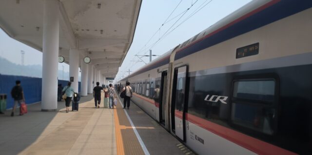 Heute Nacht geht’s uns beiden nicht so gut. Elke meint es wäre die Wurst, ich meine es wäre das untypischerweise nach Fisch schmeckende Seaweed gewesen. Sei es wie es sei – unangenehm! Nach einer letzten Nudelsuppe fahren wir mit einem TukTuk der chinesischen Marke Wuling zum Bahnhof. Der Tacho geht bis 200, aber die 50 km/h erreichen wir nie, obwohl der Straßenzustand es durchaus zuliesse. Am Bahnhof werden wir nicht auf der obersten Terrasse rausgelassen, sondern wir müssen noch ein Stück laufen, weil auf der obersten Etage eine Armada von Kleinbussen steht. Sie haben alle gleiche Aufkleber mit chinesischen Zeichen. Die Laoten müssen Zurück in Vientiane weiterlesen