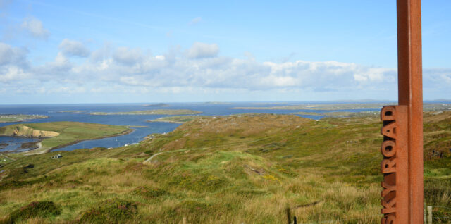 Heute Morgen ist es schon wieder sonnig! Es ist zwar ziemlich kalt, aber der Wind geht noch. Da wir nichts mehr im Kühlschrank haben und auch mal waschen wollen gehen wir es langsam an. Frühstücken, Wäsche anschmeissen und dann über die Sky Road nach Clifden. Die sehr enge Strasse führt um eine kleine Halbinsel herum und hat tolle Ausblicke auf das Meer. Leider ist sie auch Teil des Wild Atlantic Way und demnach gut befahren. Auch unser Cottage liegt an dieser Route und das merkt man deutlich am zugenommenen Verkehr. In Clifden ist gerade das Clifden Arts Festival. Wir haben uns ein Programm Sky Road, Arts Festival und ein bißchen Logistik weiterlesen
