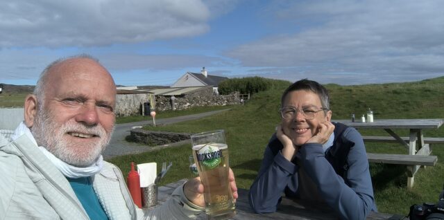 Heute Morgen ist es schon wieder sonnig! Es ist zwar ziemlich kalt, aber der Wind geht noch. Da wir nichts mehr im Kühlschrank haben und auch mal waschen wollen gehen wir es langsam an. Frühstücken, Wäsche anschmeissen und dann über die Sky Road nach Clifden. Die sehr enge Strasse führt um eine kleine Halbinsel herum und hat tolle Ausblicke auf das Meer. Leider ist sie auch Teil des Wild Atlantic Way und demnach gut befahren. Auch unser Cottage liegt an dieser Route und das merkt man deutlich am zugenommenen Verkehr. In Clifden ist gerade das Clifden Arts Festival. Wir haben uns ein Programm Sky Road, Arts Festival und ein bißchen Logistik weiterlesen