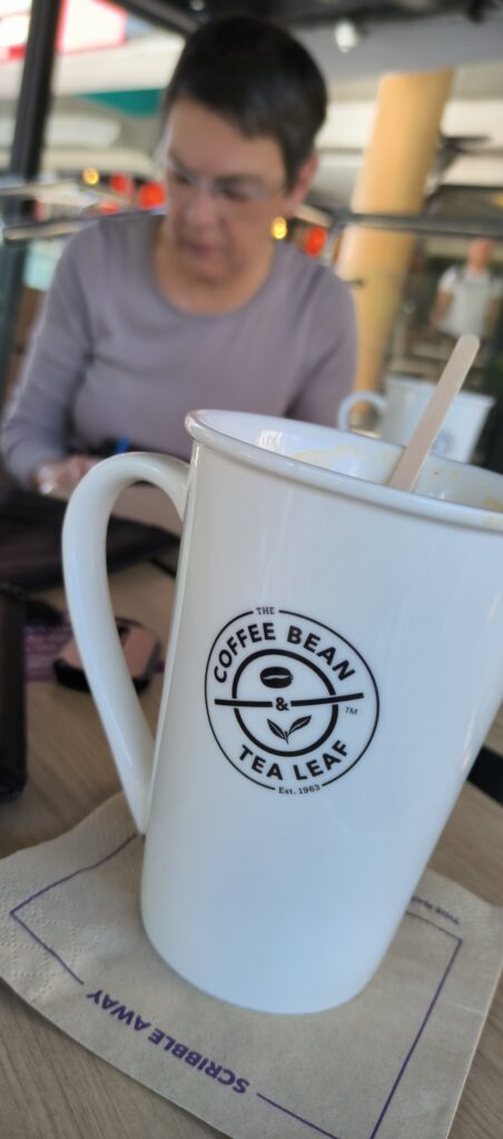 Das Zimmer ist wie befürchtet noch nicht fertig, aber wenigstens können wir die Schuhe aus und Sandalen anziehen. Dann geht’s wieder raus. Erstmal nen Café.