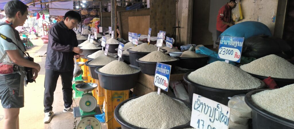 Lit meint dazu, dass es typisch laotische Gerichte sein. Wir sind nur zu zweit, also ein Privatkurs sozusagen. Ein Fahrer bringt uns im Tuktuk zu einem großen Markt den wir noch nicht kennen, weil er doch ein ganzes Stück außerhalb liegt.