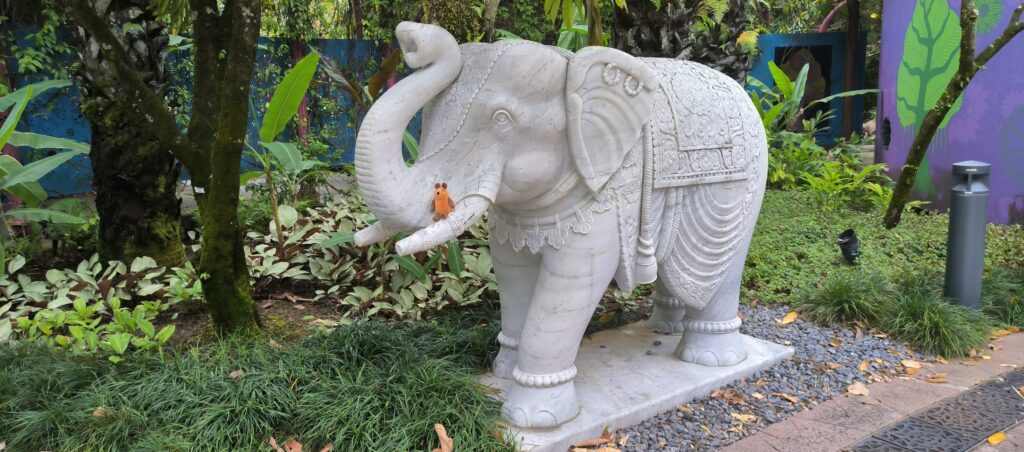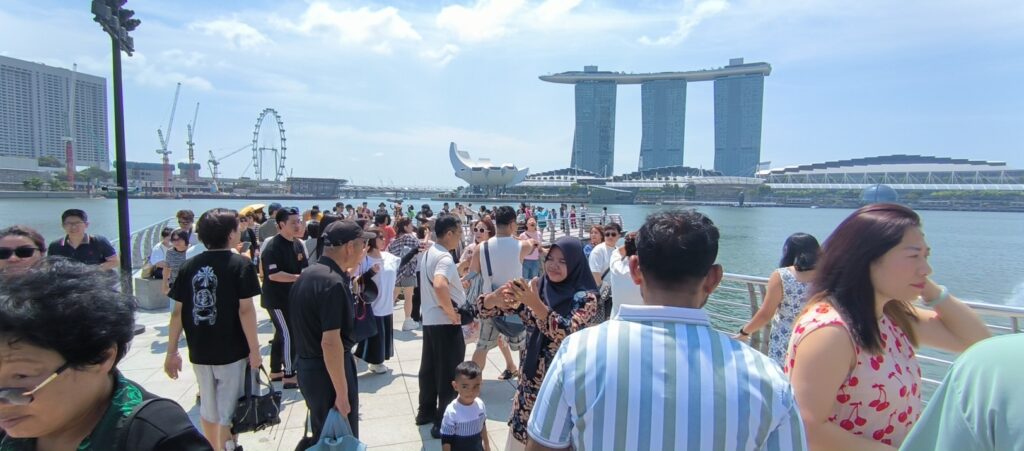 Am Merlion Park steht das Wahrzeichen Singapores, ein wasserspeiender Löwe. Dort ist der Teufel los. Jeder, aber wirklich Jeder, macht hier ein Selfie. Das ist durchaus amüsant.